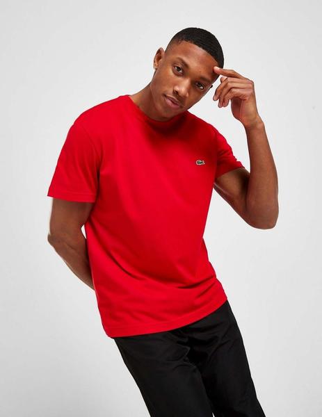Camiseta Básica Lacoste Regular Fit Roja Confeccionada en Suave Mezcla de Algodón. Cocodrilo Verde Bordado en el Pecho. Cuello Redondo. Manga Corta.