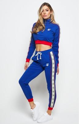 Top SikSilk Premium Tape Track Slim Fit Azul Royal Confeccionado con Material Sintético Elástico de Tacto Suave como la Seda. Cuello Alto con Cierre de Cremallera. Logo Blanco de SikSilk Bordado en el Pecho. Manga Larga. Puños y Bajo Elástico Acanalado Contrastado en Color Rojo. La Talla del Modelo es una XS.