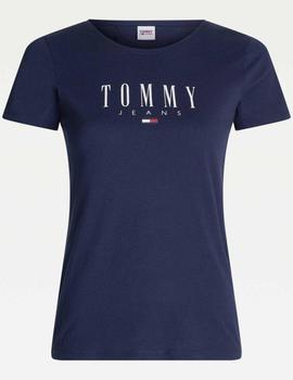 Camiseta Tommy TJW Essential Logo Tee Skinny Fit Azul Marino Confeccionada en Mezcla de Algodón Orgánico Elástico con Estampado Frontal de Tommy Jeans. Cuello Redondo. Manga Corta. Detalles Distintivos de Tommy Jeans.