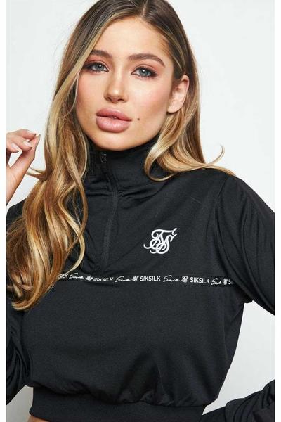 Top Deportivo SikSilk Fusion Track Top Slim Fit Confeccionado con Material Sintético Elástico de Tacto Suave como la Seda. Cuello Alto con Cierre de Cremallera. Cintura y Puños Elásticos Acanalados. Logo Blanco de SikSilk Bordado en el Pecho. Cinta Horizontal en el Pecho con Estampado de la Marca. La Talla del Modelo es una XS.