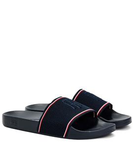 Chanclas Tommy Knitted Pool Slide Azul Marino Confeccionadas en Material Sintético Combinadas con Suave Material Textil con Textura de Piqué. Logo de Tommy Hilfiger en la Pala. Base Moldeada con Forma Anatómica Antideslizante. Suela de Goma. Altura Máxima de la Suela 3 cm. Altura Total 7 cm.