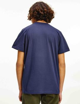 Camiseta Tommy TJM Stripe Colorblock Tee Regular Fit Azul Marino Confeccionada en 100% Algodón Orgánico. Banda Frontal Contrastada en Color Amarillo con Logo Bordado en el Pecho. Cuello Redondo. Manga Corta.