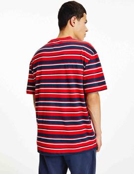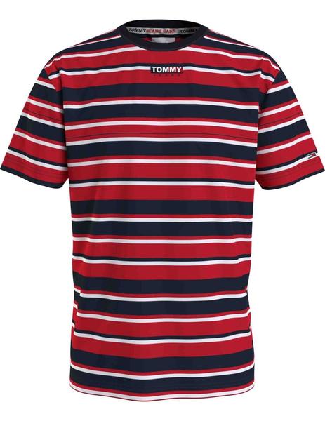 Camiseta Tommy TJM Centre Stripe Tee Regular Fit de Rayas Multicolor Confeccionada en 100% Algodón. Logo de Tommy Jeans Bordado en el Pecho. Cuello Redondo. Manga Corta.