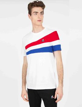 Camiseta Unisex Le Coq Sportif Tri Tee SS Nº1 Regular Fit Blanca Confeccionada en 100% Algodón con Inserción Contrastada de Bandas de Color. Peso del Tejido 4,93 Oz (140 gr). Muy Suave y Agradable de Llevar. Logo Bordado en Relieve en el Lado Izquierdo del Pecho 'Logo du Coq'. Producto Tejido y Teñido en Francia. (Aconsejamos a las Mujeres Elegir una Talla Inferior a su Talla Habitual).