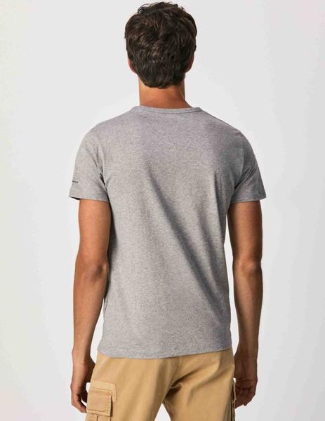 Camiseta Pepe Jeans Sacha Slim Fit Gris Confeccionada en 100% Algodón con Estampado Frontal en Efecto Pintura. Cuello Redondo. Manga Corta. Tejido Fluido y Suave.