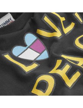 Camiseta Tommy TJW Positivees Relaxed Fit Negra Degradé Confeccionada en 100% Algodón con Logo Frontal Estampado Vintage Hippie Multicolor. Manga Corta. Cuello Redondo.