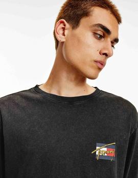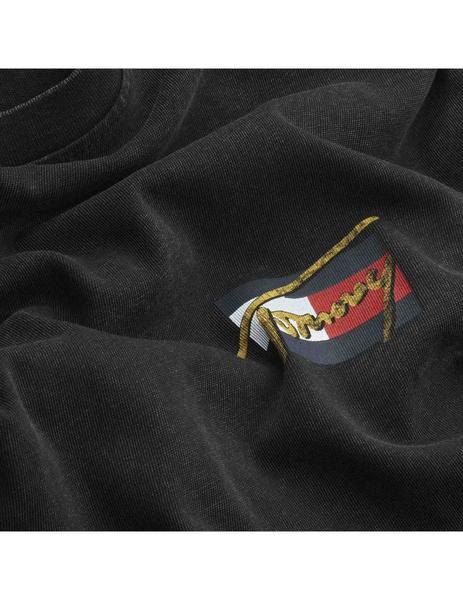 Camiseta Tommy TJM Vintaje Circular Regular Fit Confeccionada en 100% Algodón Orgánico Negro Degradé con Estampado Frontal y Dorsal Vintage. Cuello Redondo. Manga Larga.