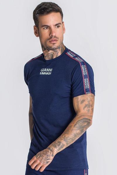 Camiseta Gianni Kavanagh Arcade Slim Fit Azul Marino Confeccionada en Algodón Elástico con Logo Frontal Estampado al Contraste. Cuello Redondo. Manga Corta con Cinta Lateral con Inscripción de la Marca. Bajo Recto. La Talla del Modelo es M (Alto en cm: 184 cm; Peso en Kg: 80 kg)