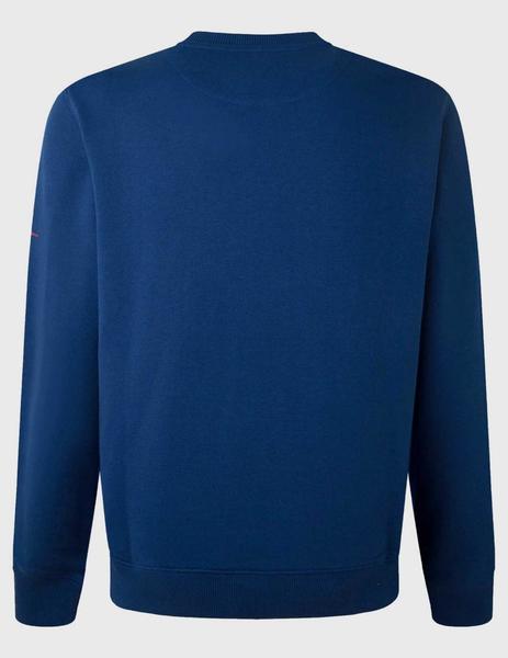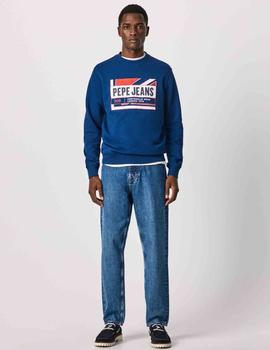 Sudadera Pepe Jeans Dev Regular Fit Azul Confeccionada en 100% Algodón con Estampado Frontal de Bandera y Logo en el Pecho. Logo en la Manga Izquierda. Cuello Redondo. Manga Larga. Bajo, Cuello y Puños Acanalados.