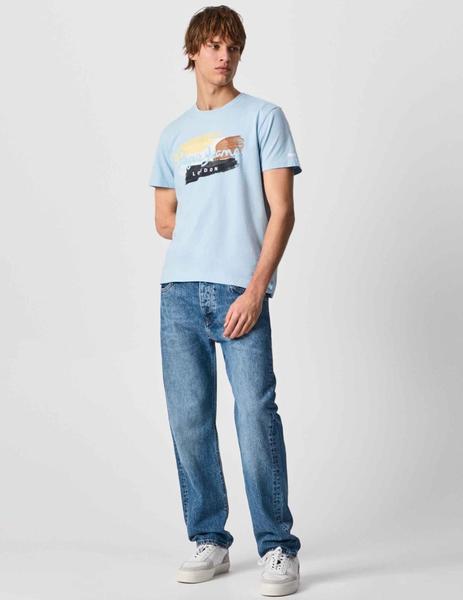 Camiseta Pepe Jeans Aegir Regular Fit Celeste Confeccionada en 100% Algodón con Estampado Frontal Multicolor de Efecto Acuarela. Cuello Redondo. Manga Corta. Bajo Recto con Aberturas Laterales.
