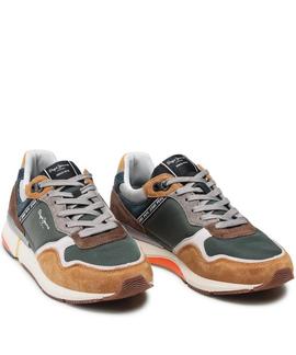 Zapatillas Pepe Jeans London Pro Urban Confeccionadas en Ante Camel y Marrón Combinadas con Mezcla de Materiales Sintéticos Multicolor. Cierre de Cordones. Logo Estampado Lateral y Parche en la Lengueta con Inscripción de Pepe Jeans. Forro Interior y Plantilla Textil. Estabilizador en el Talón. Suela Boque Ultraligera. Altura Máxima de la Suela 3 cm. Altura Total 12 cm.