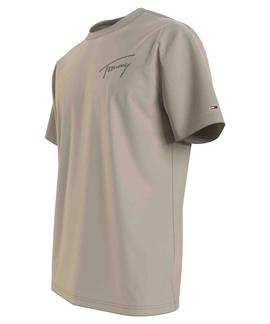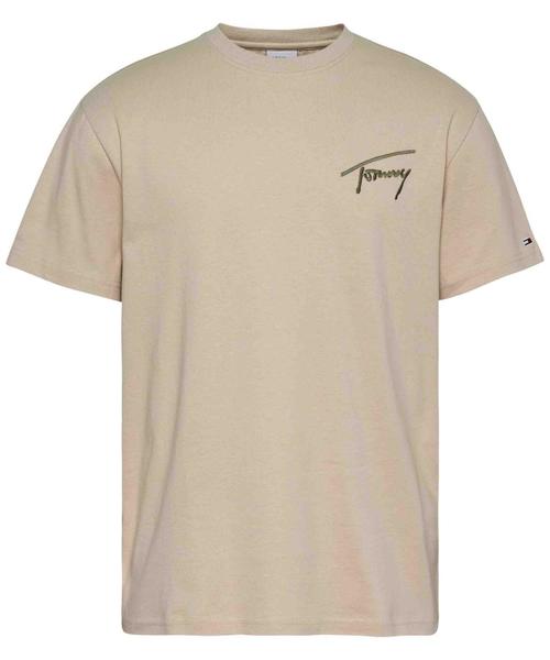 Camiseta Tommy Signature Tee Regular Fit Beige con Logo con la Firma de Tommy Jeans Bordado en el Pecho. Parche con Logo de Tommy Jeans en la Manga. Cuello Redondo. Manga Corta.