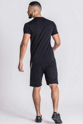 Camiseta Gianni Kavanagh Royal Tee Slim Fit Negra Confeccionada en Algodón Elástico con Parche Bordado Multicolor. Placa de Ecopiel GK en el Pecho. Cuello Redondo. Manga Corta. Bajo Recto. La Talla del Modelo es M (Alto en cm: 189 cm; Peso en Kg: 85 kg)