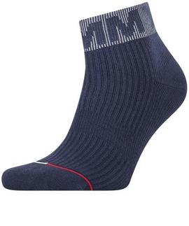 Calcetines Bajos Tommy TH Unisex TJ Quarter 1 Pack Azul Marino Confeccionados en Mezcla de Algodón Elástico Presentados en Pack de 1 Par. Inscripción de Tommy Jeans Acanalada al Contraste. Bandera de Tommy Jeans en la Unión de la Puntera. Talón y Puntera Reforzados.