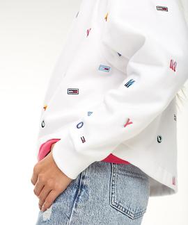 Sudadera Tommy Tjw Allover Embroidered Crew Blanca con Bordados Multicolor.