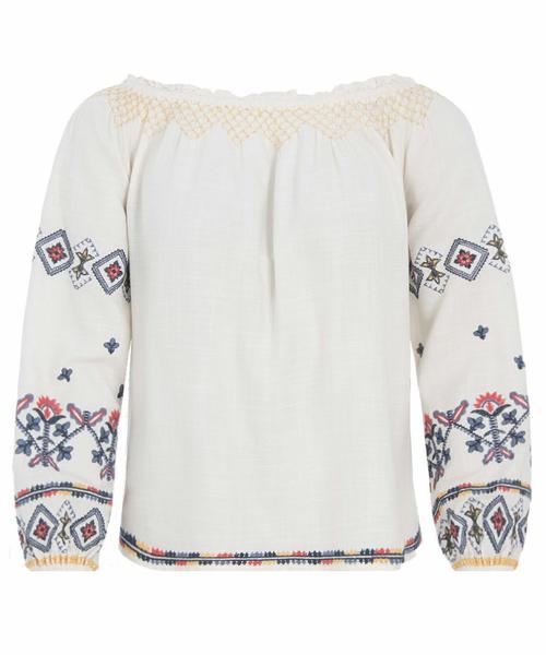 Top Pepe Jeans Sofie Beige con Bordados Etnicos y Puños Elásticos.