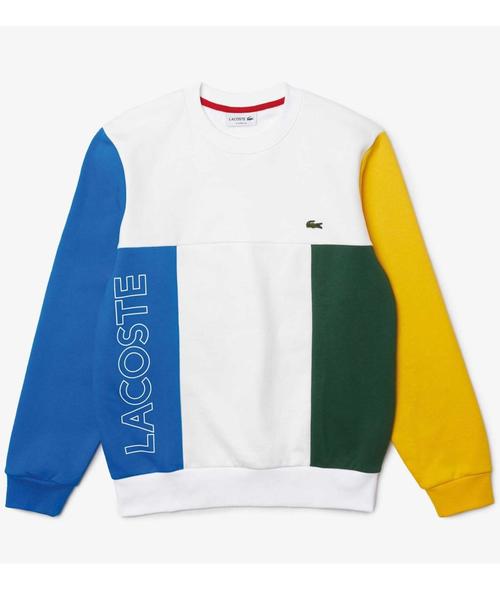Sudadera Lacoste Color Block Regular Fit Multicolor Confeccionada en Mezcla de Algodón con Estampado Frontal en Efecto 3D de Lacoste. Diseño Tricolor con Look Atlético. Cocodrilo Verde Bordado en el Pecho. Cuello Redondo.