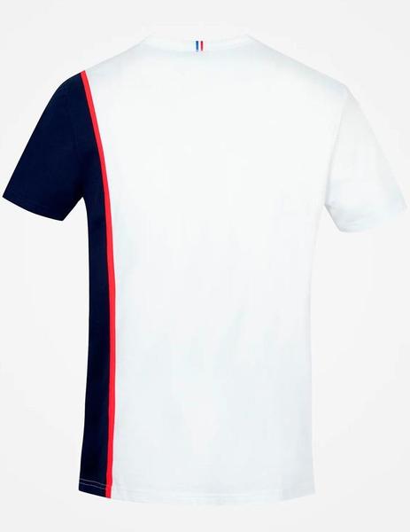 Camiseta Le Coq Sportif Saison 1 Regular Fit Blanca Confeccionada en 100% Algodón con Banda Vertical Azul Marino en el Lateral Izquierdo. Cuello Redondo. Muy Suave y Agradable de Llevar. Logo Bordado en Relieve en el Lado Izquierdo del Pecho 'Logo du Coq'. Producto Tejido y Teñido en Francia. Peso del Tejido 4,94 Oz (140 gr).