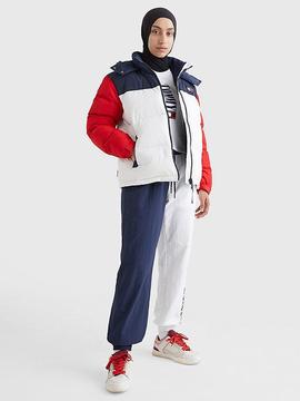 Chaqueta Acolchada Tommy TJM Color Block Alaska Regular Fit Blanca, Azul Marino y Roja Confeccionada en 100% Poliéster Reciclado con Cierre de Cremallera Frontal. Capucha Desmontable Mediante Corchetes de Presión y Ajustable con Cordón y Tensores Elásticos. Bolsos Laterales Angulados con Cierre de Cremallera. Cuello Alto. Forro Interior de Suave Poliéster Azul Marino. Parche Bordado en Relieve con el Logo de Tommy Jeans en el Pecho y en la Parte Trasera. Bajo Recto Ajustable con Tensores Elásticos Laterales. Puños Elásticos y Ajustables para Aislarse del Frío. Relleno Interior de Thermo Fibra. Prenda de Abrigo muy Ligera y Cálida con Buena Impermeabilización y un Gran Aislamiento Térmico, Ideal para esos Fríos Días de Invierno.