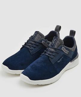 Zapatillas Pepe Jeans Jay Pro Confeccionadas en Piel Azul Marino Combinadas con Material Textil Gris y Ecopiel al Tono. Cierre de Cordones. Logo Grabado Lateral. Parche en la Parte Superior Lengueta con Inscripción de Pepe Jeans. Tirador Trasero para Facilitar un Mejor Calce. Forro Interior y Plantilla Desmontable Textil. Estabilizador en el Talón. Suela Monobloque de Eva Ultraligera. Fabricado con Materiales Sostenibles y Reciclados que Contribuyen a Mejorar el Medio Ambiente. Altura Máxima de la Suela 3,5 cm. Altura Total 12 cm.