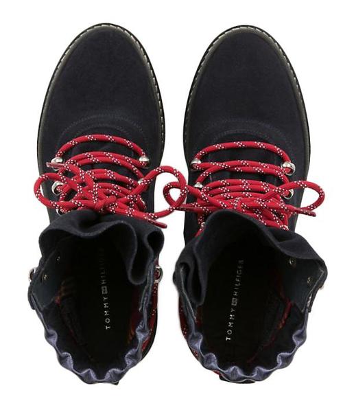 Botas Tommy Modern Hiking Boot Suede de Serraje Azul Marino con Ecopiel Metalizada al Tono. Altura Máxima de la Suela 2,5 cm. Altura Total 18,5 cm. Suela de Goma Dentada Antideslizante.