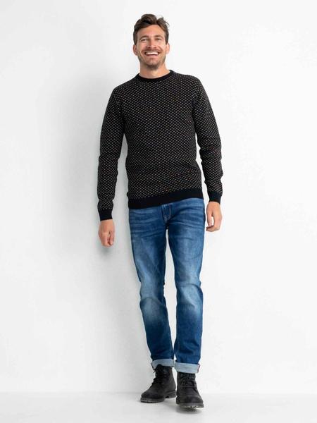 Jersey Petrol Slim Fit Negro Confeccionado en Suave Punto de Puro Algodón con Estampado Integral Multicolor. Cuello Redondo. Cuello, Puños y Bajo Acanalados.