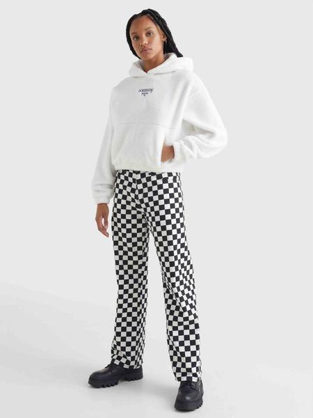 Sudadera Polar Essential Logo Regular Fit Confeccionada en Suave Forro Polar Blanco con Capucha Fija. Logo Bordado Frontal de Tommy Jeans. Bolsos Laterales con Cierre de Cremallera. Logo de Bandera Bordado en la Manga. Puños y Bajo Elásticos.