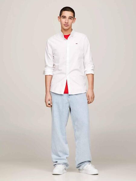 Camisa Tommy Slim Fit Oxford Blanco Confeccionada en Suave Algodón Orgánico Elástico con Cierre de Botones Frontal. Cuello Clásico Abotonado. Logo de Tommy Jeans Bordado en el Pecho. Manga Larga Terminada en Puño Simple Abotonado. Bajo con Corte Ondulado. Detalles Distintivos de Tommy Jeans. Este Producto Contiene Algodón Orgánico que Garantiza que se ha Cultivado sin Utilizar Pesticidas ni Fertilizantes Químicos, ni Semillas Modificadas Genéticamente. Una Producción Mejor para las Personas que lo Producen, Mejor para el Medio Ambiente en el que Crece y Mejor para el Mundo.