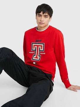 Sudadera Tommy Modern Sport Relaxed Fit Roja Confeccionada en Suave Mezcla de Algodón con Logo de Tommy Jeans Bordado Frontal. Cuello Redondo. Parche con el Logo de Tommy Jeans en el Puño. Diseño Amplio y Holgado, Ligeramente Caído de Hombros. Cuello , Puños y Bajo Acanalados.