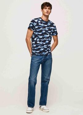 Camiseta Pepe Jeans Rem Regular Fit Confeccionada en Suave Algodón Sostenible con Estampado Integral de Camuflaje Azul. Cuello Redondo. Manga Corta. Logo de Pepe Jeans Bordado en el Pecho. El Algodón Sostenible Minimiza el Uso de Sustancias Químicas Nocivas, Mejora la Calidad del Suelo y Previene la Contaminación para Ayudar a Proteger la Salud de los Agricultores y la Fauna Local.