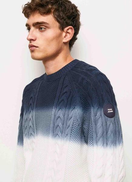 Jersey Pepe Jeans Perseo Regular Fit Color Block Degradé Confeccionado en Puro Algodón Sostenible con Textura Trenzada. Cuello Redondo. Manga Raglán. Tinte en Prenda Mediante Técnica Deep Dye. Parche de Goma con Logo en Relieve en la Manga Izquierda. Cuello, Puños y Bajo Acanalados. El Algodón Sostenible Minimiza el Uso de Sustancias Químicas Nocivas, Mejora la Calidad del Suelo y Previene la Contaminación para Ayudar a Proteger la Salud de los Agricultores y la Fauna Local.