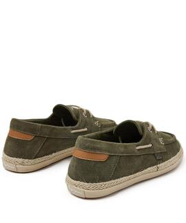 Nauticos Pepe Jeans Maoui Sailor Confeccionados en Suave Ante Verde con Cordones de Cuerda Beige. Puntera Redondeada. Forro Interior Textil. Plantilla Anatómica no Desmontable de Poliuretano Imitando Lino Beige, que Absorve Perfectamente el Impacto de la Pisada. Logo de Pepe Jeans Estampado en la Lengueta. Suela de Goma con Ribeteado de Cuerda Trenzada Beige. Grosor Máximo de la Suela 2 cm. Altura Total 9 cm.