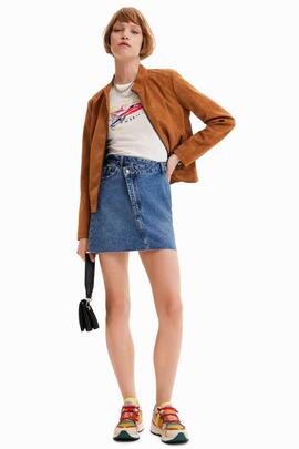 Chaqueta Desigual Detroit Regular Fit Confeccionada en Suave Ecopiel Marrón de Efecto Ante con Cierre de Cremallera Frontal. Cuello Mao. Bolsos Laterales con Cierre de Cremallera. Forro Interior en Suave Poliéster Estampado. Esta Chaqueta de Estilo Biker, Elegante y Ligera, de Textura Piel de Melocotón con Estampado Sutil al Tono Efecto Manchas Leopardo, está Confeccionada con Fibras Sostenibles y Poliéster Reciclado. La Talla de la Modelo es una M y mide 175 cm.