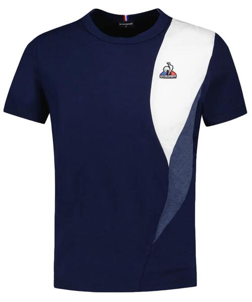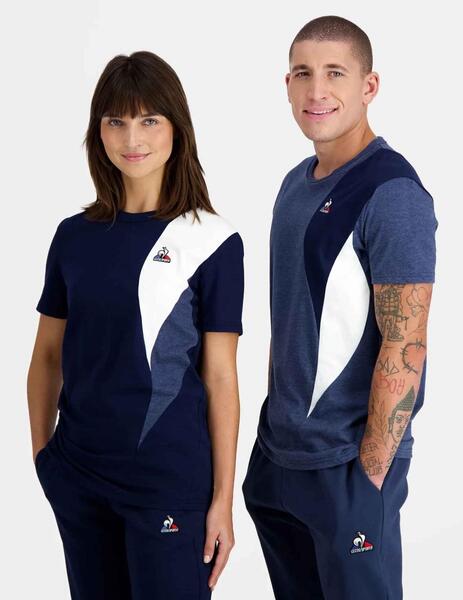 Camiseta Unisex Le Coq Sportif Saison 1 Regular Fit Azul Marino Confeccionada en Puro Algodón con Banda Vertical Ondulada Contrastada Bicolor con Forma de Llama en el Lateral Izquierdo. Cuello Redondo. Manga Corta. Muy Suave y Agradable de Llevar. Logo Bordado en Relieve en el Lado Izquierdo del Pecho 'Logo du Coq'. Se Aconseja una Talla Menor a la Habitual en las Mujeres. Peso del Tejido 4,94 Oz (140 gr).