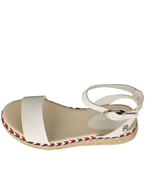 Sandalias de Cuña Baja Tommy Low Wedge Sandal Confeccionadas en Suave Piel Blanca con Cierre de Hebilla Dorada. Punta Abierta. Interior de Algodón y Algodón Reciclado al Tono. Insignia del Monograma TH en la Tira. Detalles Distintivos de Tommy Hilfiger. Entresuela Revestida de Yute. Suela de EVA. Estas Sandalias de Cuña Baja, Cómodas y Modernas, Producidas Según la Organización Leather Working Group, Presentan los Colores Distintivos de Tommy Hilfiger en una Veraniega y Elegante Suela Recubierta de Yute. Altura de la Cuña de 5 cm. Altura Total 14,5 cm.