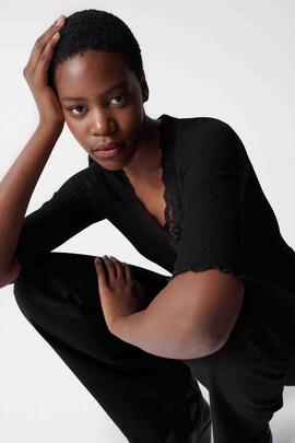 CAMISETA DE PUNTO CANALÉ CON ENCAJE COLOR NEGRO