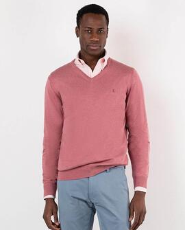 Jersey El Ganso Regular Fit Rosa Confeccionado en Tejido 100% Algodón BCI con Hilatura Melange. Cuello de Pico. Logo Bordado en el Pecho y Coderas de Antelina al Tono. Cuenta con una Media Luna Interior en Tejido Yale y una Cinta Corbatera como Tapacosturas. Cuello, Puños y Bajo Acanalados. Los Tejidos de Algodón BCI (Better Cotton Initiative) Aseguran un Uso Responsable del Algodón: Una Producción Mejor para las Personas que lo Producen, Mejor para el Medio Ambiente en el que Crece y Mejor para el Mundo.