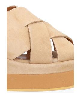 Sandalias Alpe Phuket Fabricadas en Suave Ante Camel con Puntera Abierta Redonda. Plantilla de Piel a Tono. Suela de Goma Antideslizante. Caña Baja. Altura de la Cuña 7,5 cm. Altura de la Plataforma 4 cm. Altura Total 12 cm.