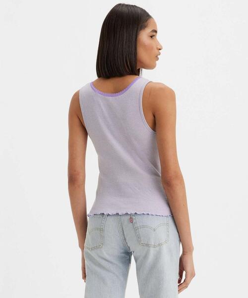 Camiseta de Tirantes Levi's® Dry Goods Tank Slim Fit Confeccionada en Suave Punto Acanalado 100% Algodón con Estampado de Rayas Púrpura. Cuello de Pico Ribeteado con Encaje Blanco y Rematado con un Pequeño Lazo. Bajo Acabado en Minivolantes. Parche Bordado de Levi's® Dry Goods en la Parte Izquieda del Bajo. Inspirándonos en una de las Primeras Prendas de Punto que Fabricamos a Principios del siglo XX, Levi's® Dry Goods Resucitó a Finales de los 90 y Ahora Vuelve a estar Disponible. Presentamos la Camiseta de Tirantes Dry Goods: con la Cantidad Justa de Detalles, como el Bajo Rizado, el Ribete de Encaje y un Lazo Pequeño. Este Punto Sencillo pero Femenino se Combina Fácilmente con tu Jean Levi's® para Conseguir un Look Realmente Emblemático.