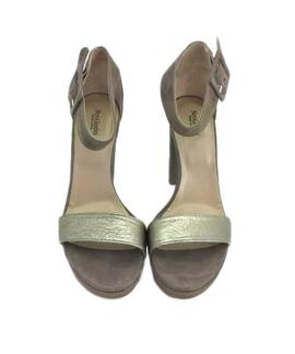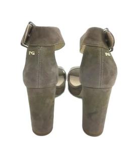 Sandalias NeroGiardini de Piel Beige con Tira Dorada y Cierre de Pulsera. Altura de Tacón 10,5 cm. SE RECOMIENDA ESCOGER UNA TALLA MENOR A LA HABITUAL.