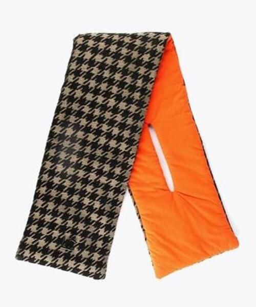 Cuello Lola Casademunt Confeccionado en Suave Poliéster con Estampado Pata de Gallo Combinado con Forro Polar Naranja. Logo Frontal LC Lacado Negro. Medidas: 20cm x 110cm.