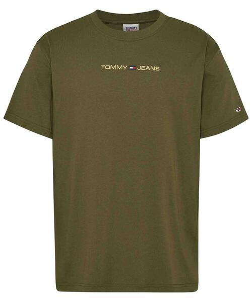 Camiseta Tommy Gold Linear Regular Fit Verde Caqui Confeccionada en Puro Algodón Orgánico con Logo de Tommy Jeans Dorado Bordado al Contraste en el Pecho. Cuello Redondo. Manga Corta. Parche con el Logo de Tommy Jeans en la Manga. Los Tejidos de Algodón BCI Aseguran un Uso Responsable del Algodón: Una Producción Mejor para las Personas que lo Producen, Mejor para el Medio Ambiente en el que Crece y Mejor para el Mundo.