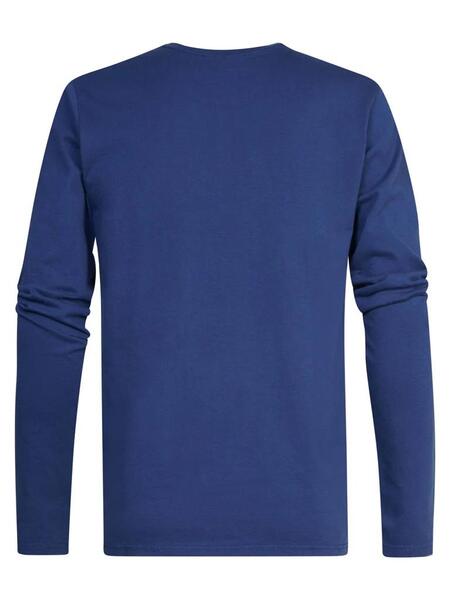 Camiseta Petrol Artwork Regular Fit Azul Confeccionada en Puro Algodón con Logo Frontal Estampado con Efecto Degradé. Cuello Redondo. Manga Larga. Parche de Petrol en el Bajo.