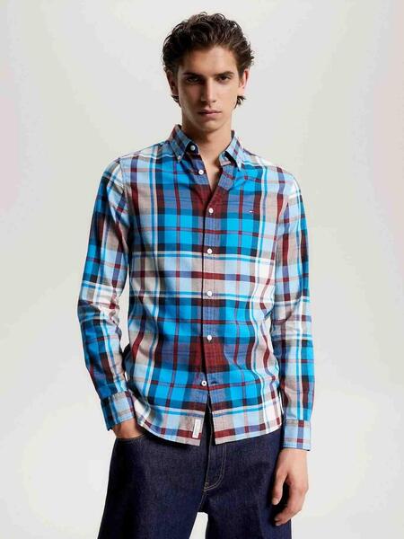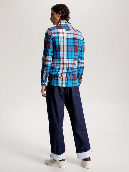 • CAMISA TOMMY OXFORD TARTAN SLIM FIT CERULEAN AQUA