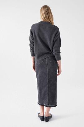 Jersey Salsa Regular Fit Gris Confeccionado en Suave Punto Grueso Acrílico con Detalle de Botones Realizados con Pedrería en el Hombro Izquierdo. Cuello Redondo. Manga Larga. Cuello, Puños y Bajo Acanalados.