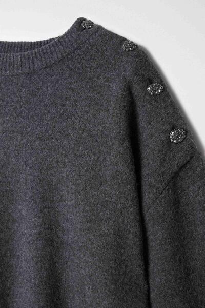 • JERSEY DE PUNTO GRIS CON BOTONES BRILLANTES